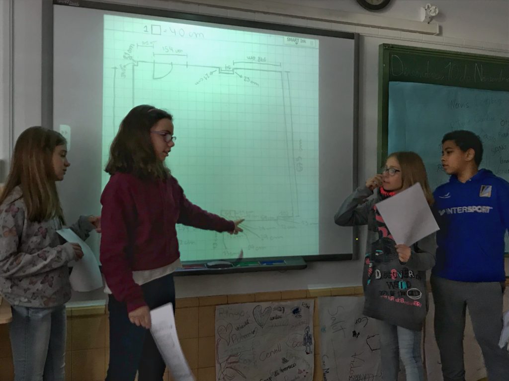 Exposem i expliquem con hem dibuixat els plànols a escala que hem fet a l’espai de mesura.