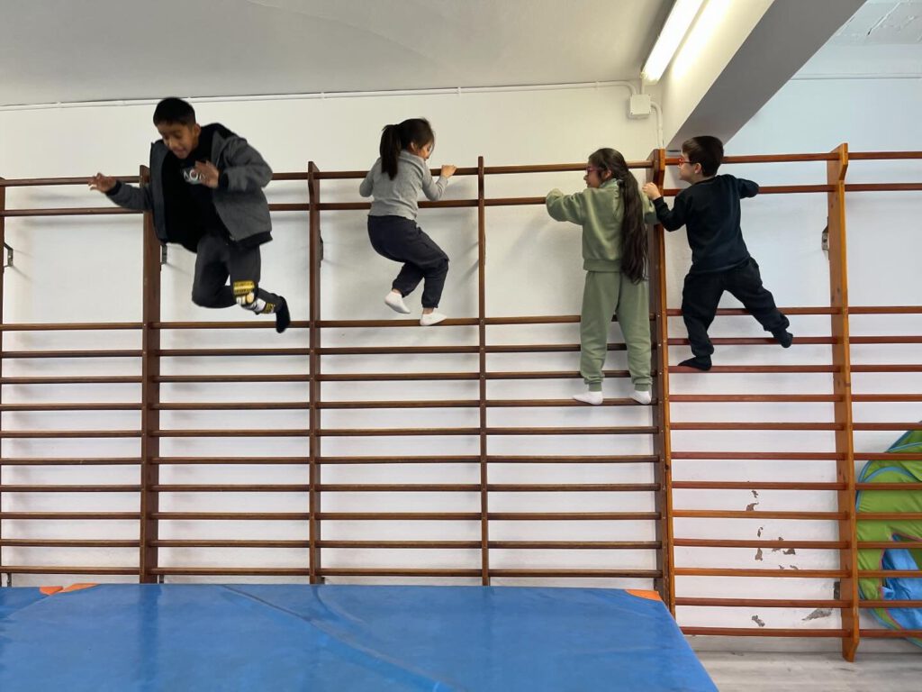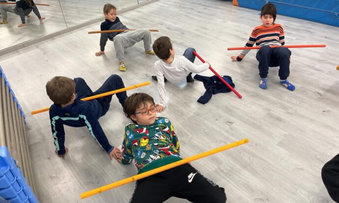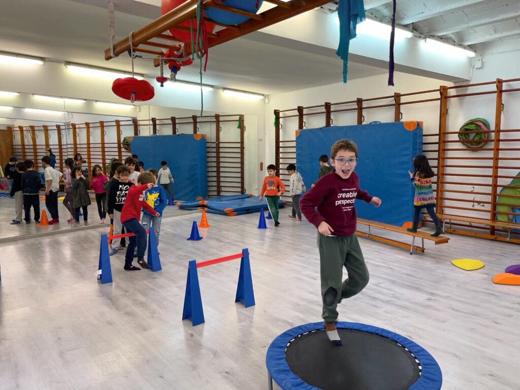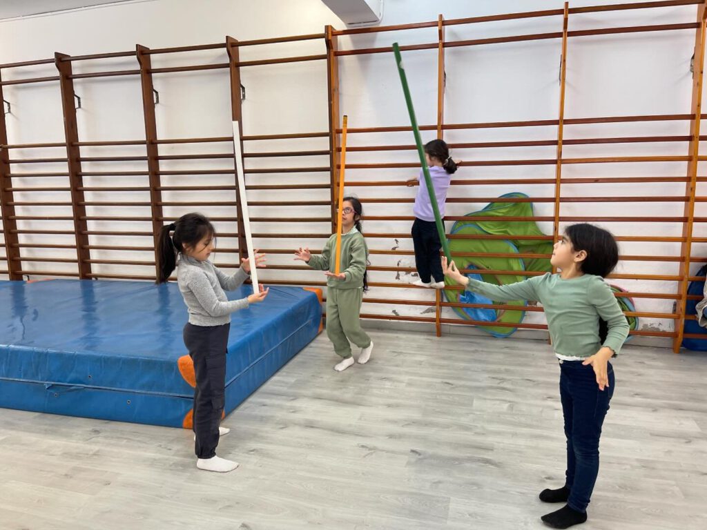 Els infants de la Comunitat de Mitjans, en les sessions de Cos i Moviment, estan posant a prova la força de la gravetat desenvolupant la coordinació i l’equilibri.