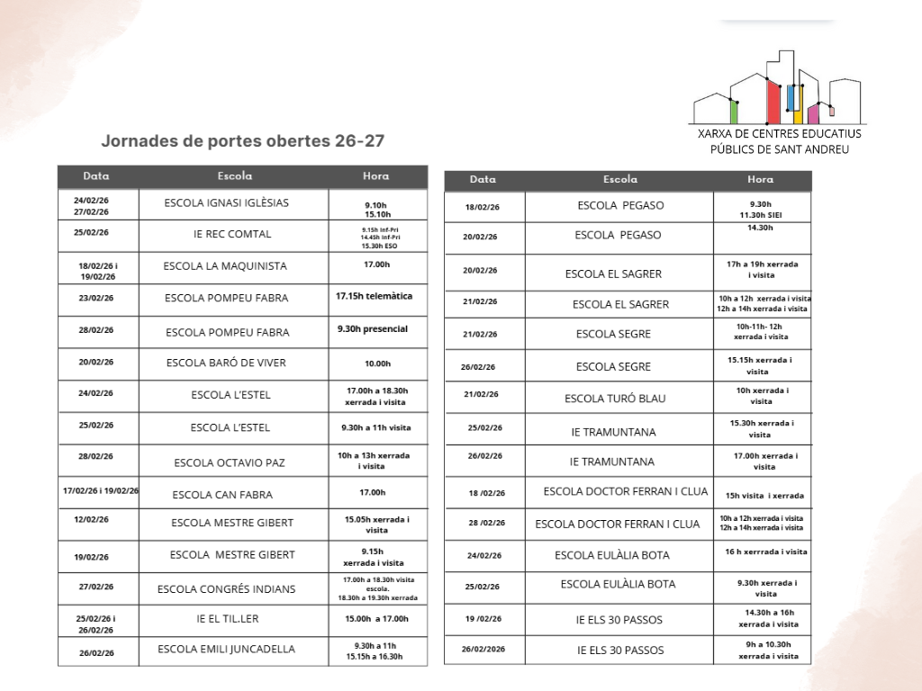 CALENDARI PREINSCRIPCIÓ 2026-2027
