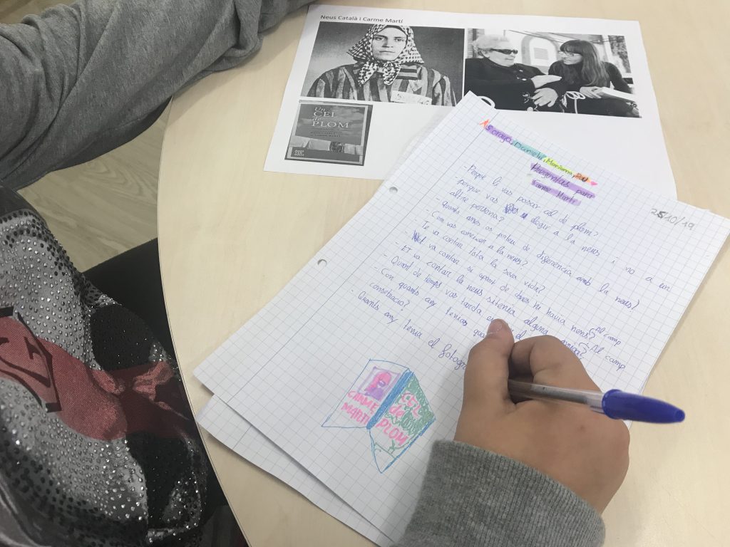 Els infants de cinquè hem preparat aquesta tarda algunes preguntes per a la visita de dilluns. Tenim moltíssimes ganes de que la @CarmeMartiCanti ens expliqui moltes coses de la vida de la @NeusCatala_ i de com va escriure el llibre “Un cel de plom” . #AltarMemòria2019