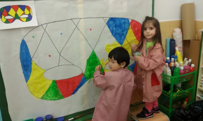 La classe de les pomes de P3 ens preparem per celebrar el carnaval tot pintant una màscara molt gran.