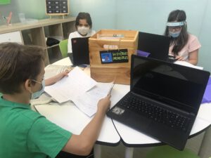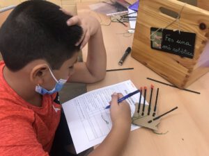 Els infants de la comunitat de grans ultimen els preparatius abans de compartir amb la resta de grup les evidències d’aprenentatge que les primeres capses de treball globalitzat d’aquest curs han generat.