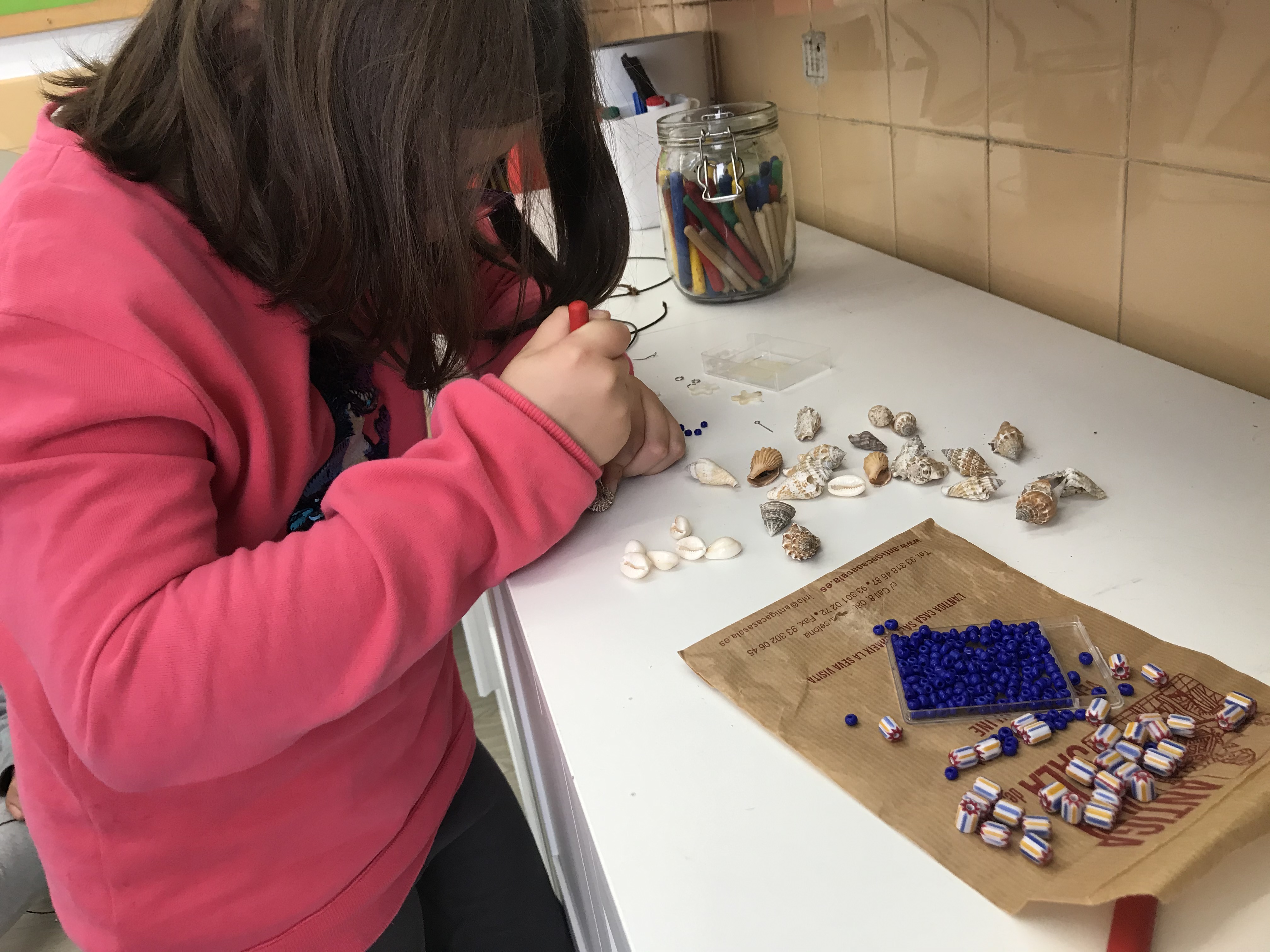 A projecte pensem i dissenyem el nostre collaret, polsera o turmellera. Escollim les peces i ens posem mans a l’obra. És la nostra manera de tenir present el mar.