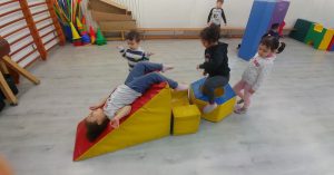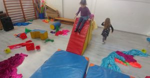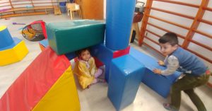 Els infants gaudeixen del seu cos durant l’exploració lliure de l’espai i del material!