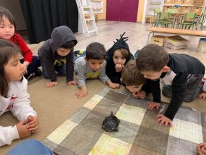 Observem la nostra tortuga, la seva closca ens interessa molt, per què la fa servir? Ens convertim en tortugues per sentir com caminen i com se senten portant la closca sempre a sobre!