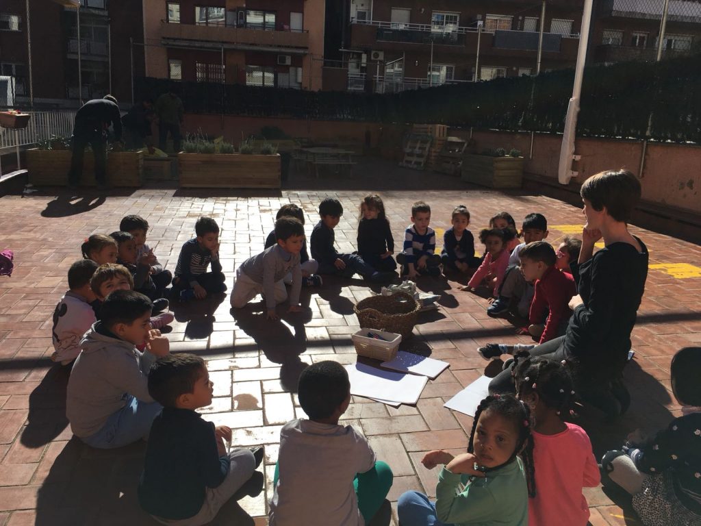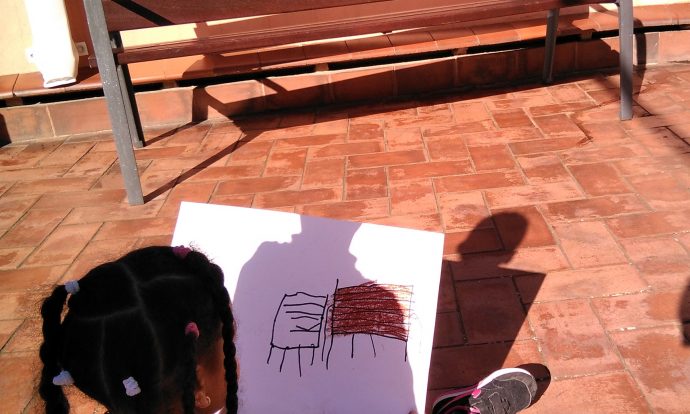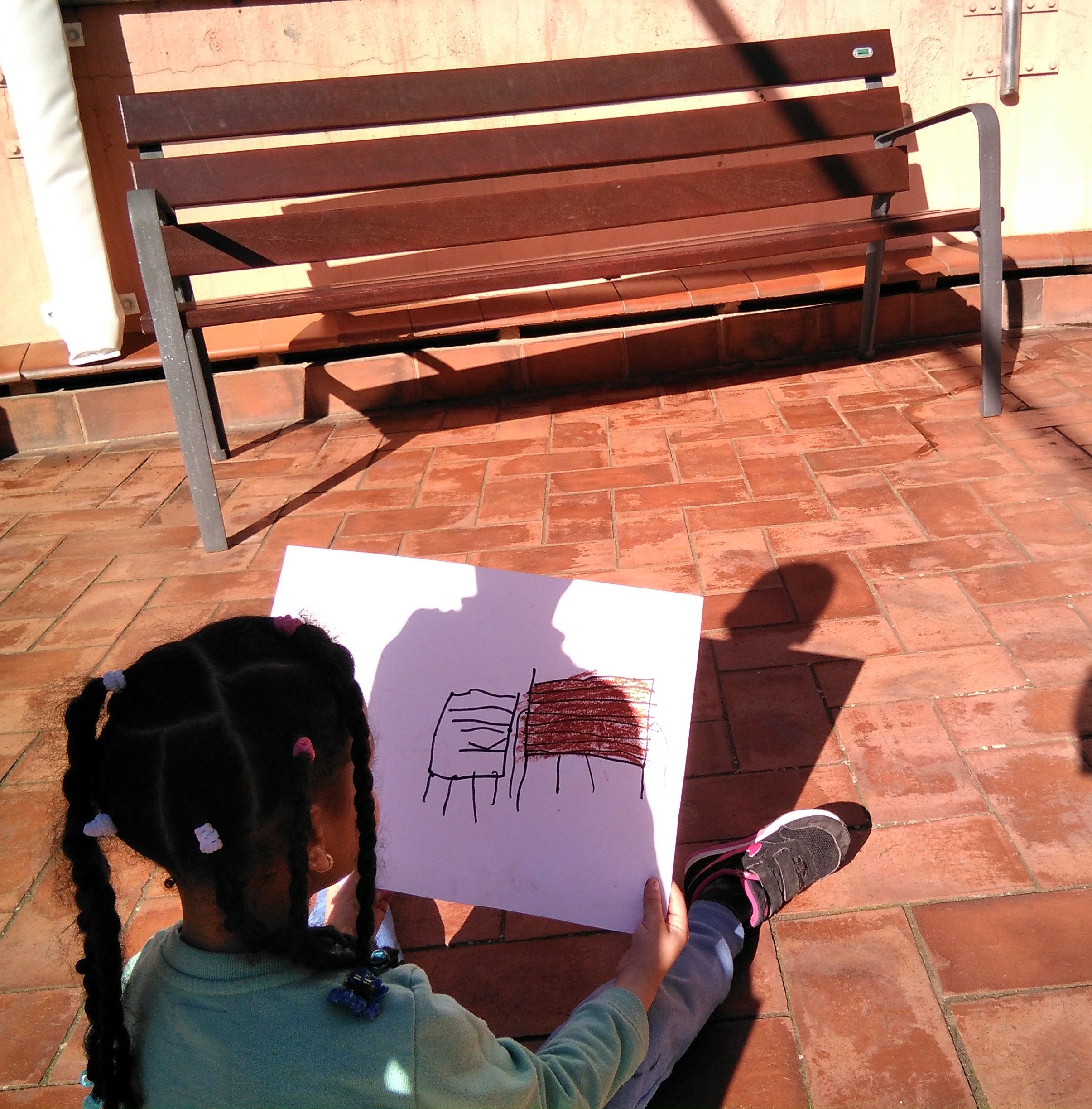 Aquesta tarda, hem pujat al pati per dibuixar allò que veiem: edificis, bancs, flors, etc. Per fer-ho hem tingut en compte els colors originals i hem observat amb atenció per no deixar-nos cap detall!