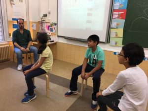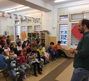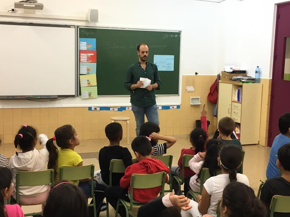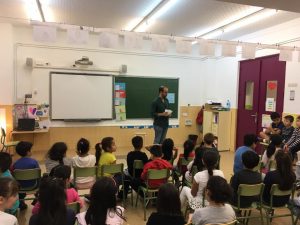 Els infants de 1r i 2n hem acabat el dia amb la visita, aquesta vegada, d’un locutor de ràdio, el periodista Quim Esteban. Aquesta setmana estem aprenent moltíssimes coses del món de la comunicació en record al Carles Capdevila.