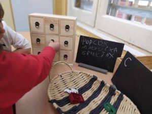 Busquem un objecte que comenci amb aquesta lletra! A l’ambient #EnsComuniquem hem jugat amb els calaixets dels sons