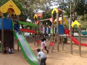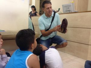 Visitem la sabateria Refort’s per respondre la pregunta. Hem descobert que n’hi ha un munt i que haurem de seguir investigant per completar la llista. En acabar aprofitem per jugar una estona al parc.