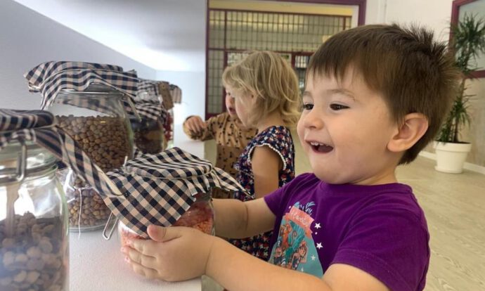 Afegim el nostre pot a la instal.lació col.laborativa del passadís principal per convertir-lo en el Rebost de l’OP en el marc del #projecteCUINES.