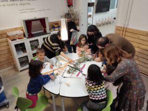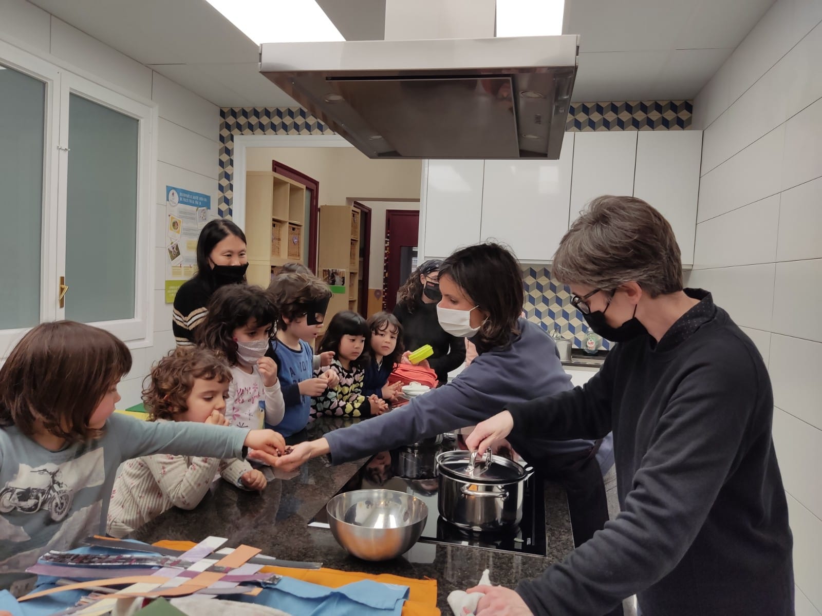 Tercer dia de taller amb l’ @inulaLandscape i l’equip de la @fundaciomiro. Avui hem tenyit amb flor d’hibisc i fulles d’olivera i ja hem teixit algunes estovalles! Gràcies!! #colorsataula #escoladefamílies