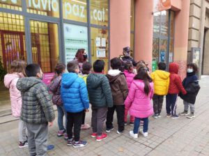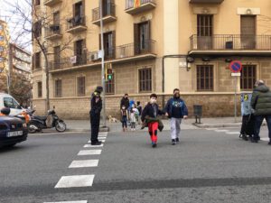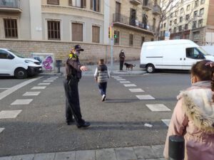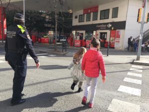 Avui els grups 1M i 2M acompanyats de la Brigitte, agent de la Guàrdia Urbana, hem après a travessar pel pas de vianants amb cura i correctament. A més hem aprofitat per fer algunes preguntes i aprendre nou vocabulari dels elements del carrer!