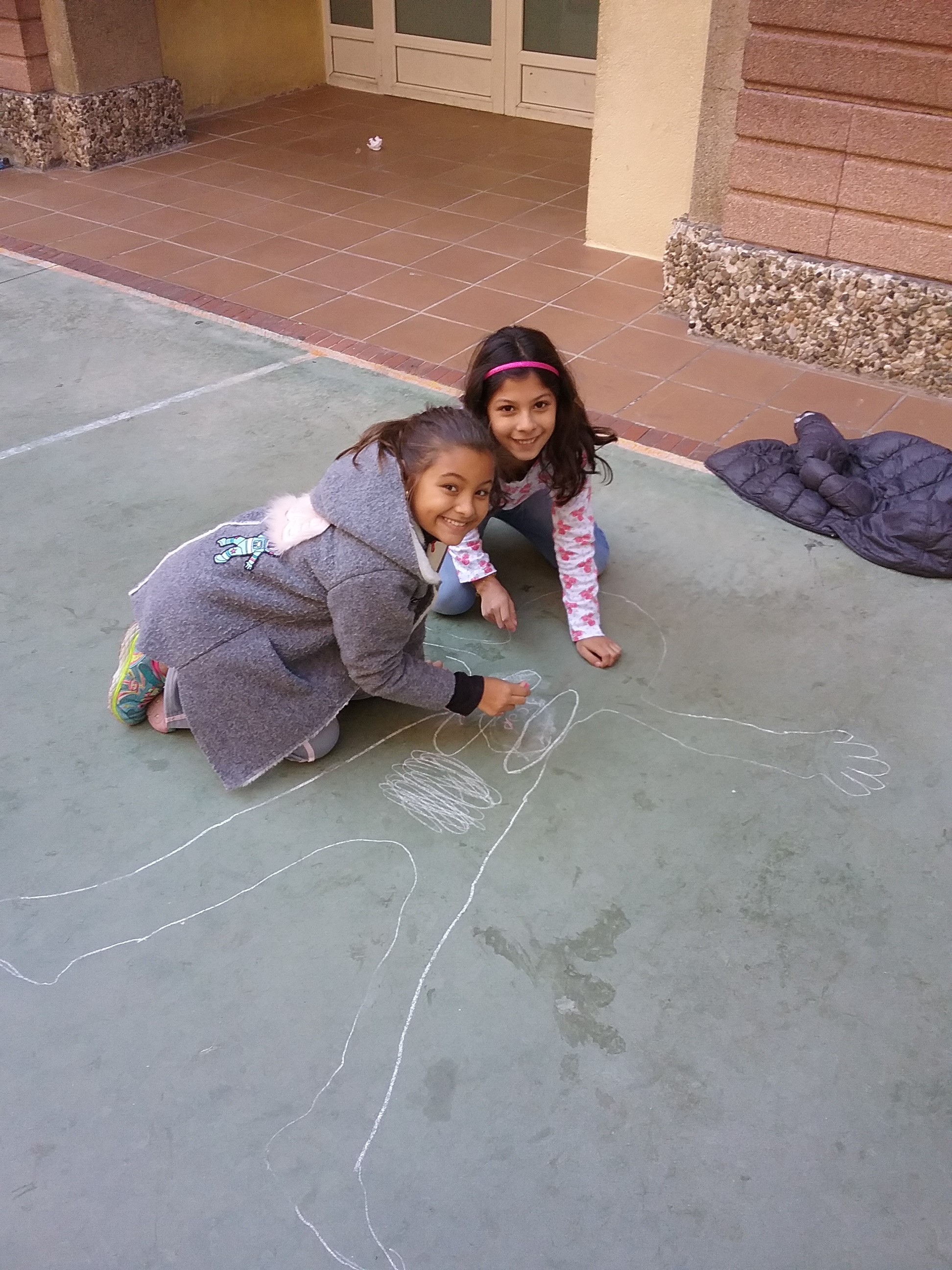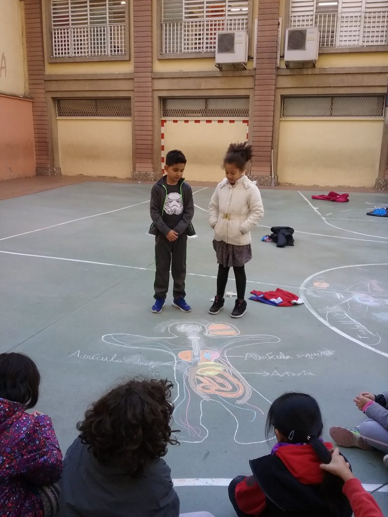 Els alumnes de 4t hem baixat al pati a realitzar siluetes. A partir dels dibuixos exposem el recorregut de l’oxigen, els nutrients i el diòxid de carboni pel cos.