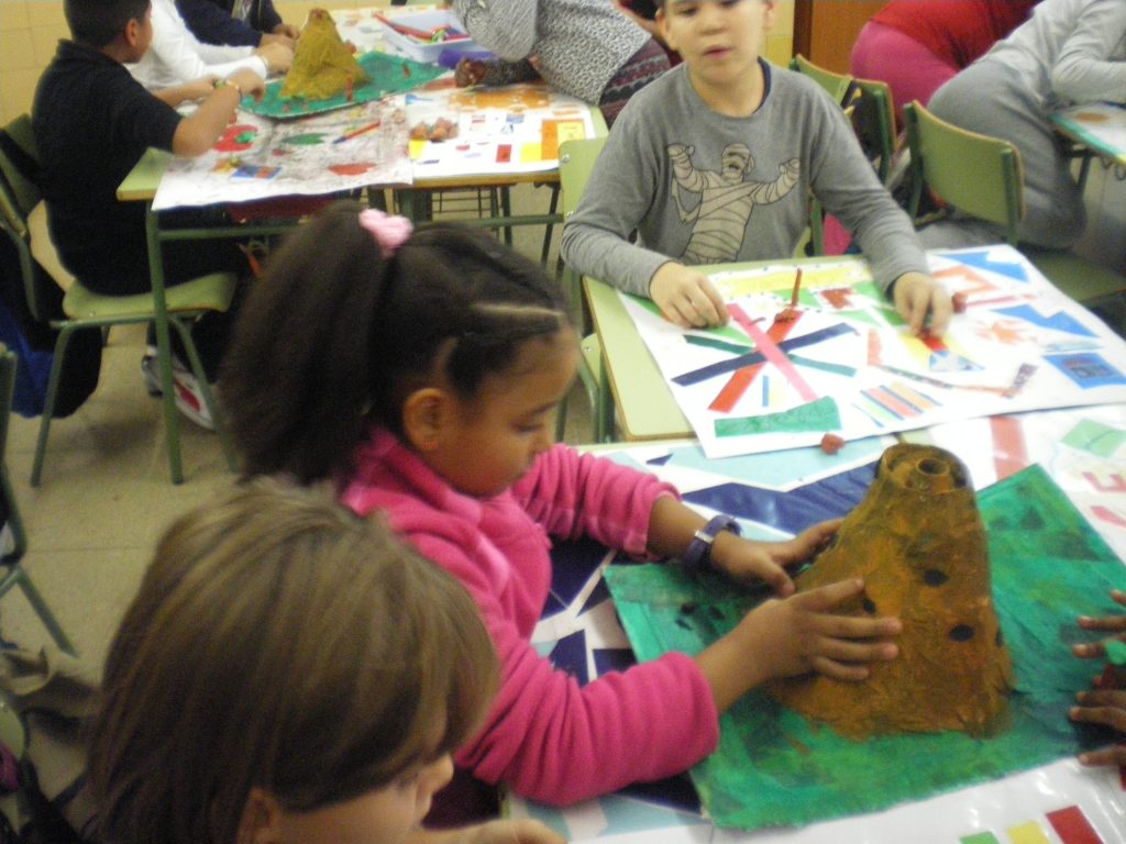 Fa dues setmanes que la classe de 4t vàrem finalitzar el nostre miniprojecte dels “Volcans i terratrèmols”. Ho vam voler concloure amb la simulació d’una erupció en unes maquetes de volcans que nosaltres mateixos vàrem construir.