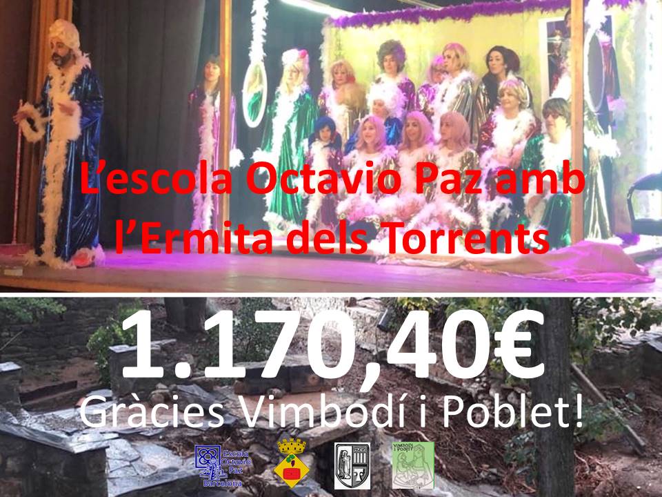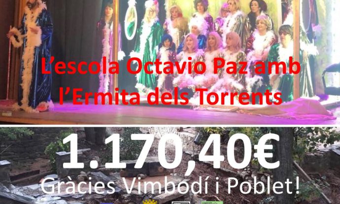 “O’Pèls, perruqueria de senyores” aconsegueix recollir 1.170,40€ amb les aportacions voluntàries de tots els assistents al teatre de Vimbodí i Poblet. Junts contribuïm a la millora de l’entorn de l’ermita dels Torrents afectat per les riuades. GRÀCIES!