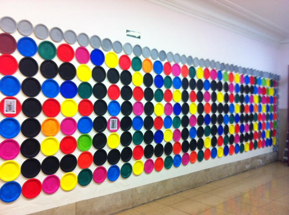 somCOLORS és el mural col.lectiu que ens dóna la benvinguda al centre. És el resultat final de la primera activitat d’escola per motivar el projecte de recerca sobre els colors.