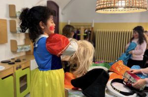 Tallers de carnestoltes a la comunitat de petits: maquillatges, màscares, música i ball, serpentines i colors…per carnaval, tot s’hi val!