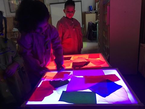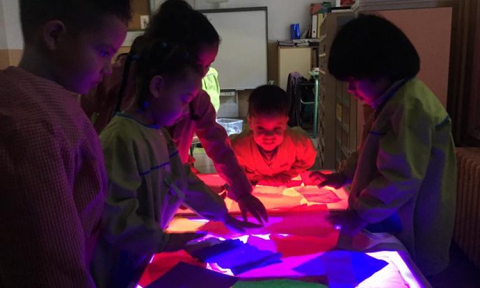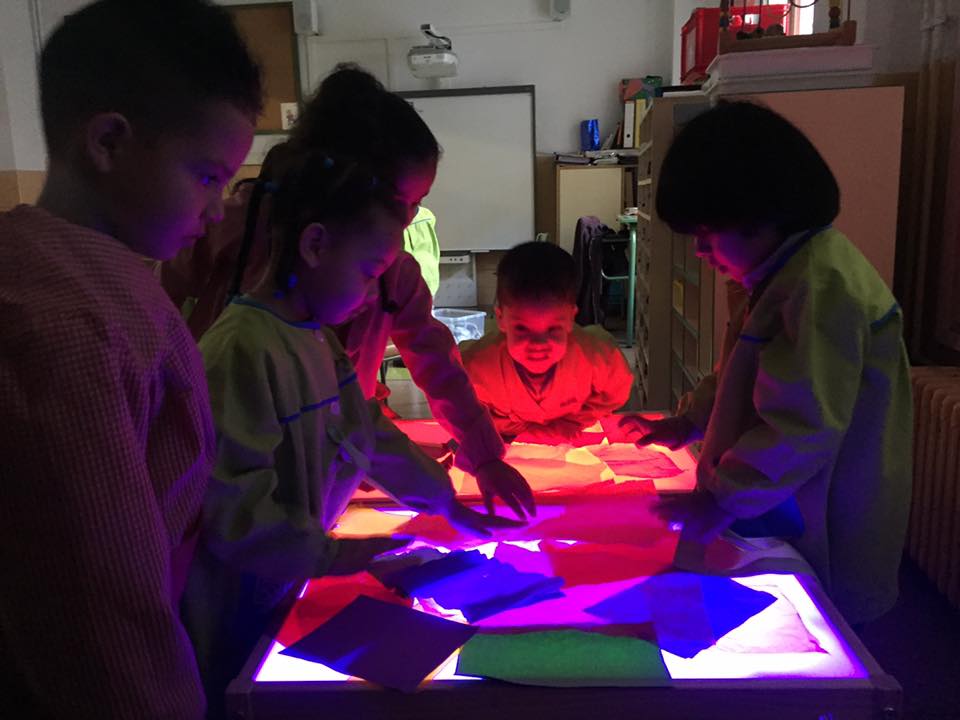 La comunitat dels petits estrena les taules de llum. Experimentem amb els colors i els materials opacs, translúcids i transparents.