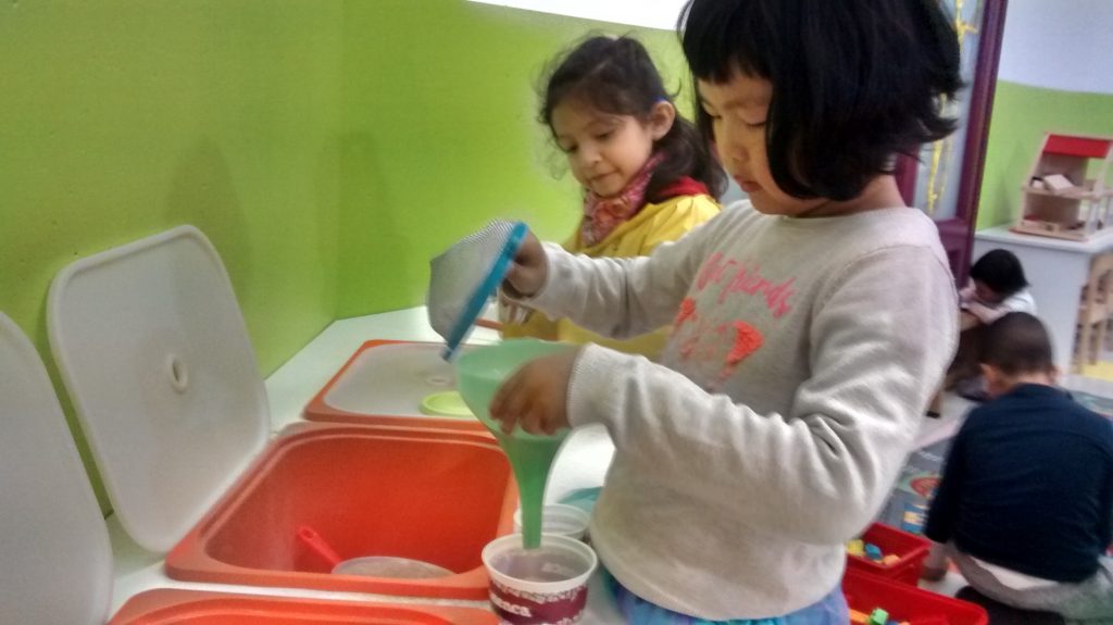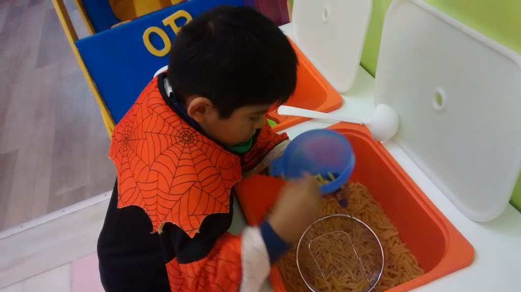 A l’ambient ARA SOM traspassem llegums i pasta d’un recipent a un altre.