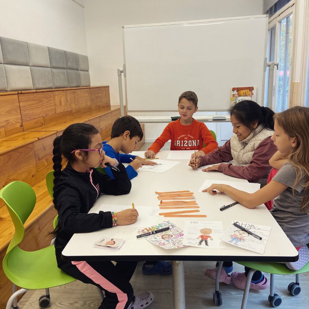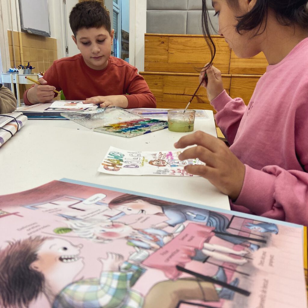 Hem treballat el text descriptiu, hem il·lustrat els amics fent servir adjectius i aquarel·les i finalment hem gravat un vídeo tot donant feedback als companys.