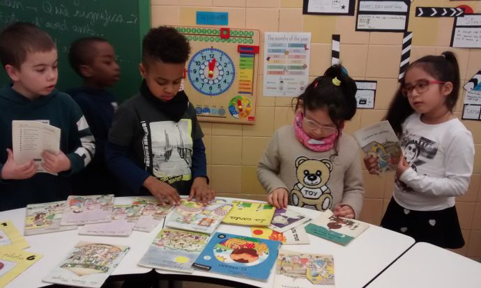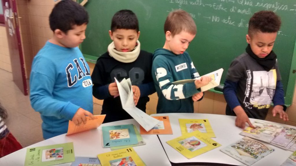 Els nens i les nenes de primer i segon hem mirat, buscar i remenat llibres que després hem llegit.
