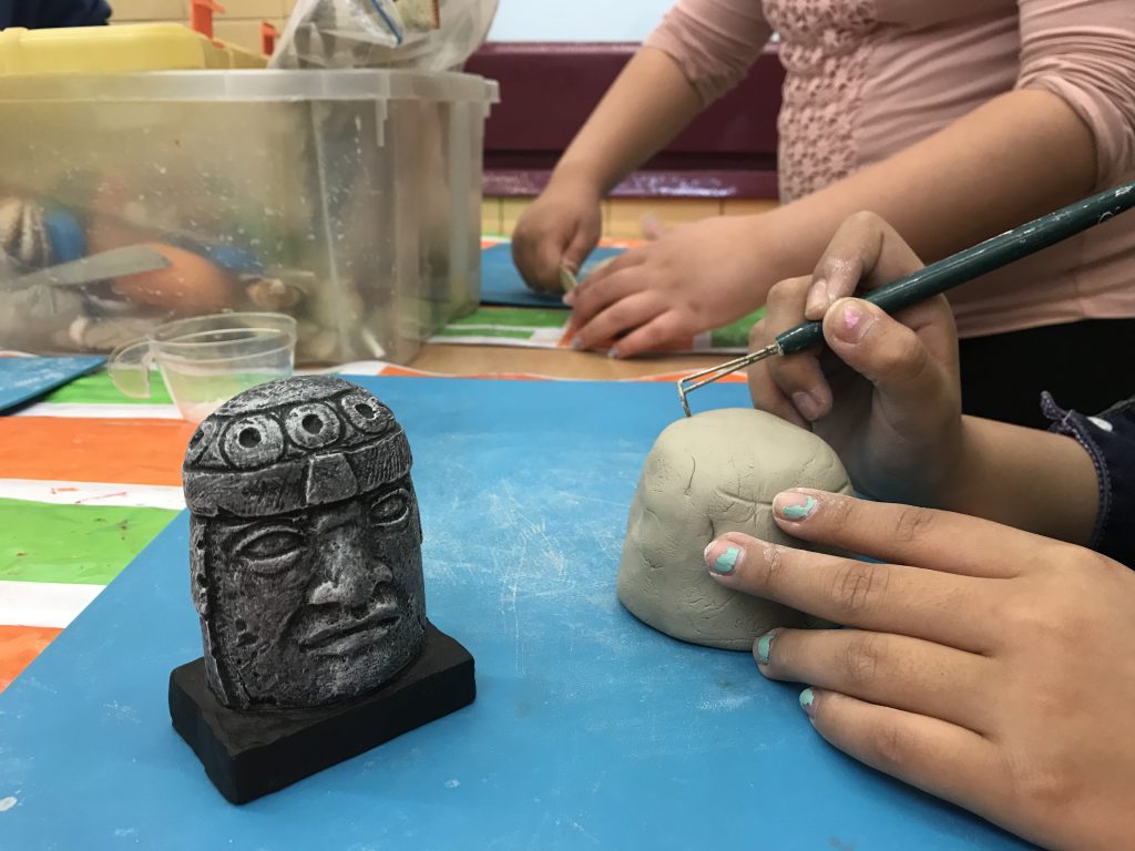 Fixeu-vos bé! Mireu quina troballa arqueològica hem fet a l’escola! Sí, són caps olmeques! D’on hauran sortit?