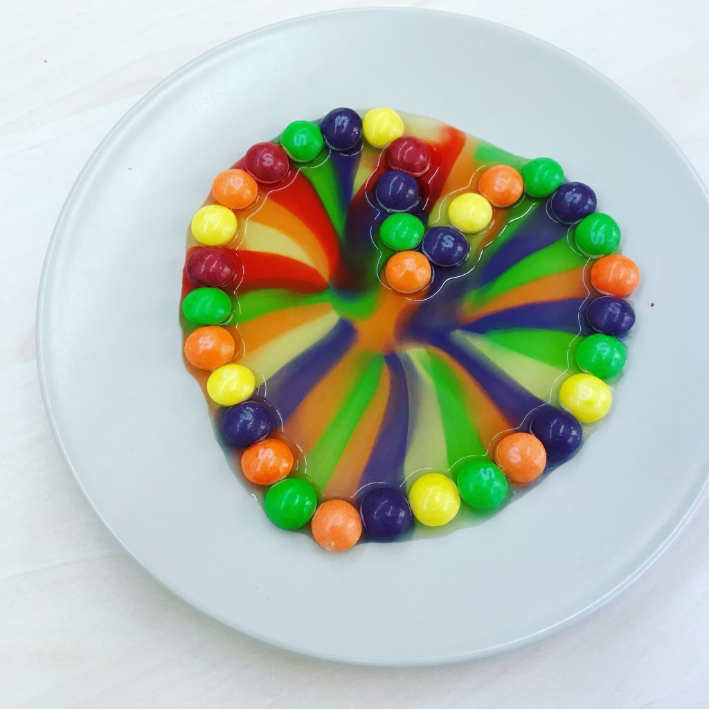 Setmana de la ciència 2017. Avui, a 5è, un experiment ben acolorit. Colorants alimentaris que no es barregen. Interessant!