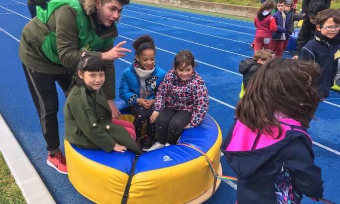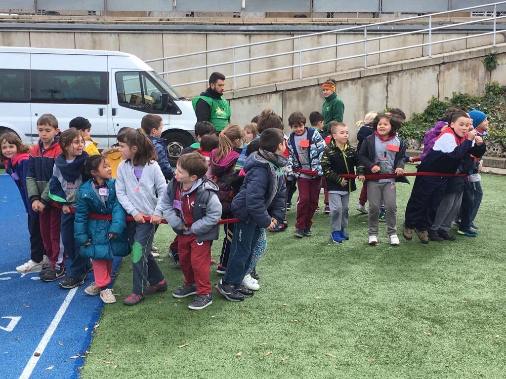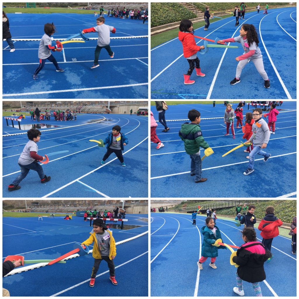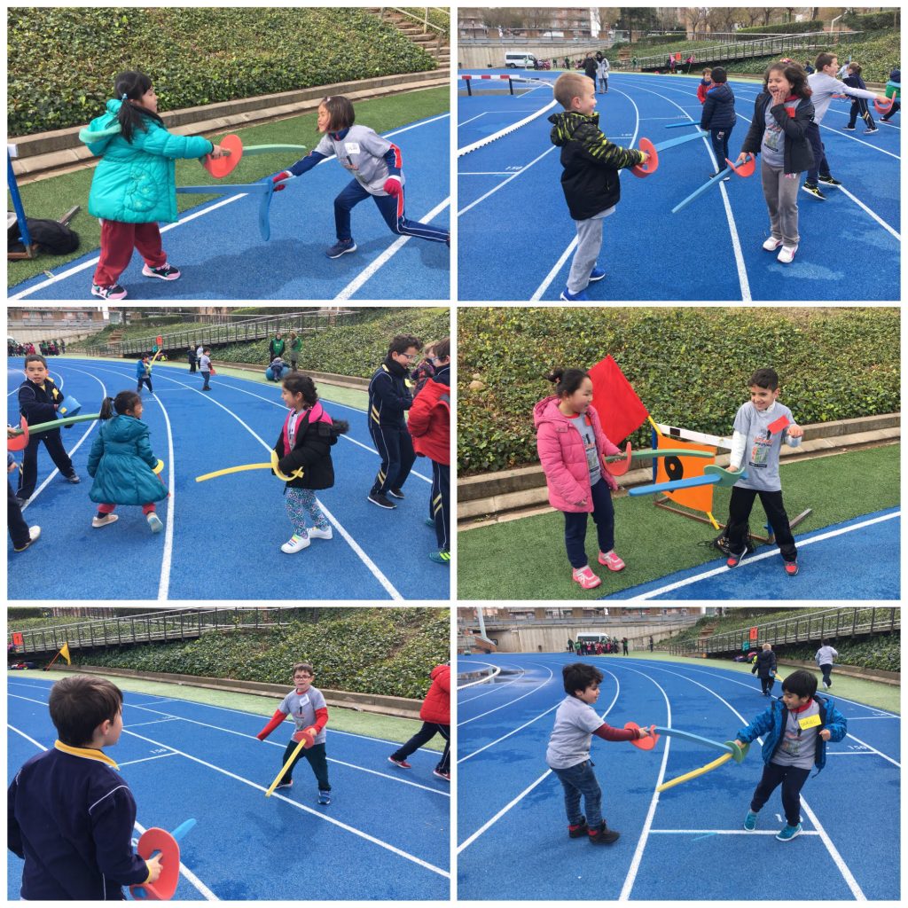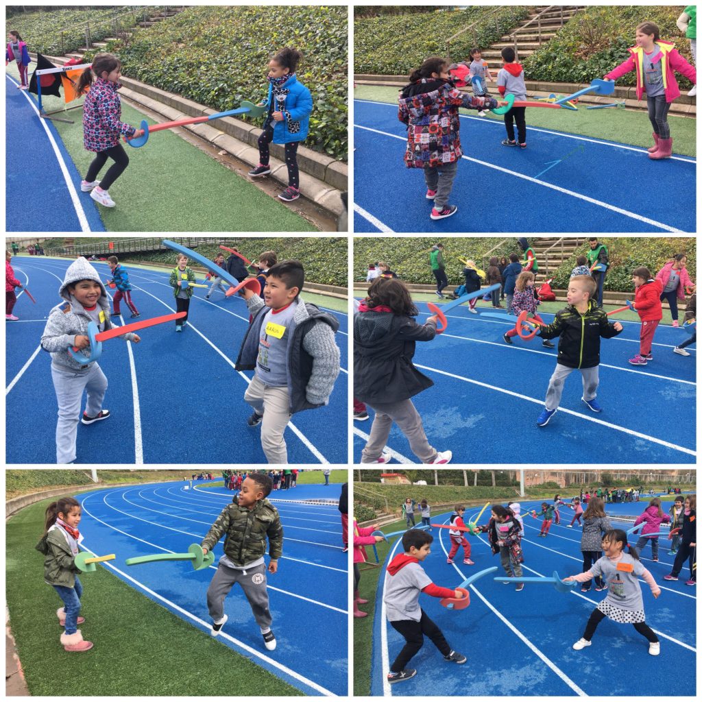 Avui els infants de 1r ens hem desplaçat fins Can Dragó per poder gaudir de les 21es jornades “una escola per tothom”, on hem realitzat diferents jocs a cadascuna de les estacions i hem pogut conèixer i conviure amb infants d’altres escoles. Les estacions que hem realitzat han sigut: relleus, salt de llargada, circuit d’habilitats, acrosport, lliscaments, punteria, esgrima, paracaigudes i canaletes. Mireu que bé ens ho hem passat!