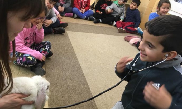 Durant tot el matí hem tingut un acompanyant especial a la classe. En Zin Den ha portat el seu conill i li hem escoltat el cor, anava molt ràpid!
