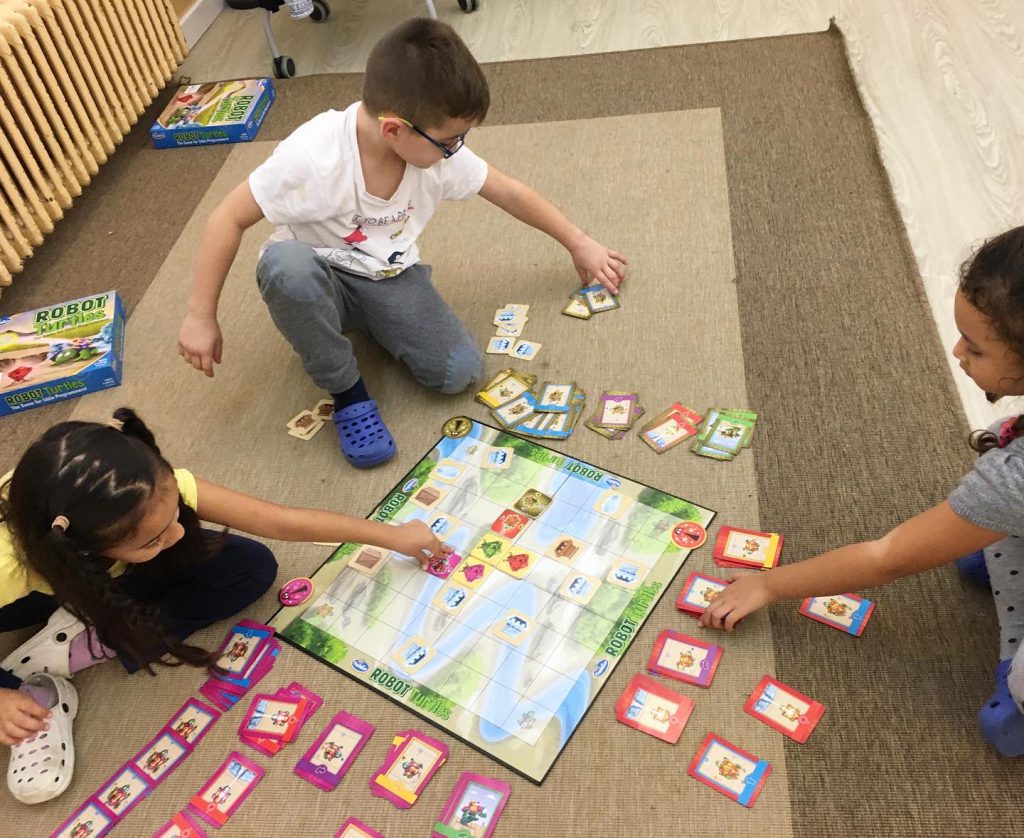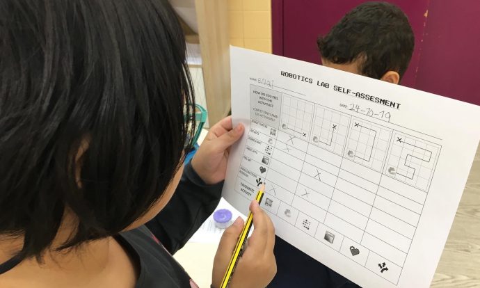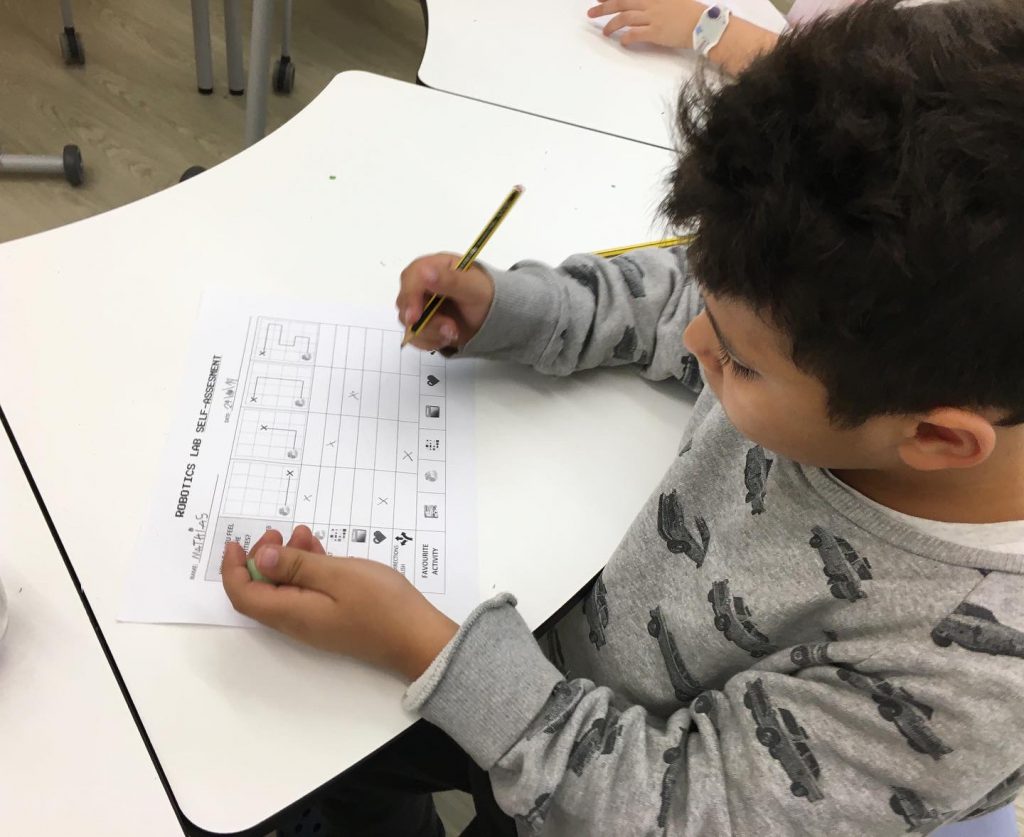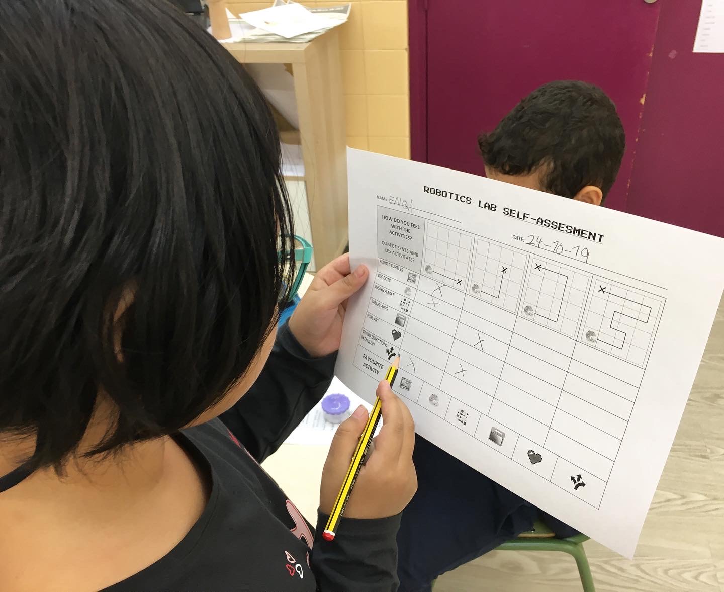 Last session at the robotics lab with some 1st and 2nd graders. We have been doing some unpluged activities and assessing ourselves comparing the dificulty of each activity with different bee-bot paths.